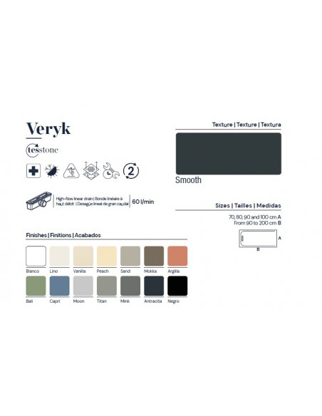 La texture Smooth est douce et agréable, légèrement texturée, Veryk Smooth est la douche par essence, avec des caractéristiques qui se mélangent avec l'environnement.