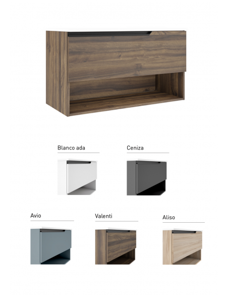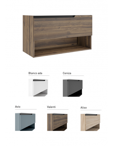 Finition: Laqué mat (Blanco Ada ; Avio ; Ceniza) et Mélaminé (Aliso ; Valenti)