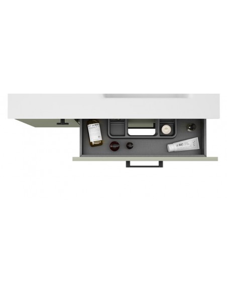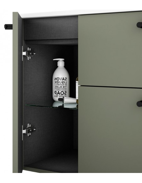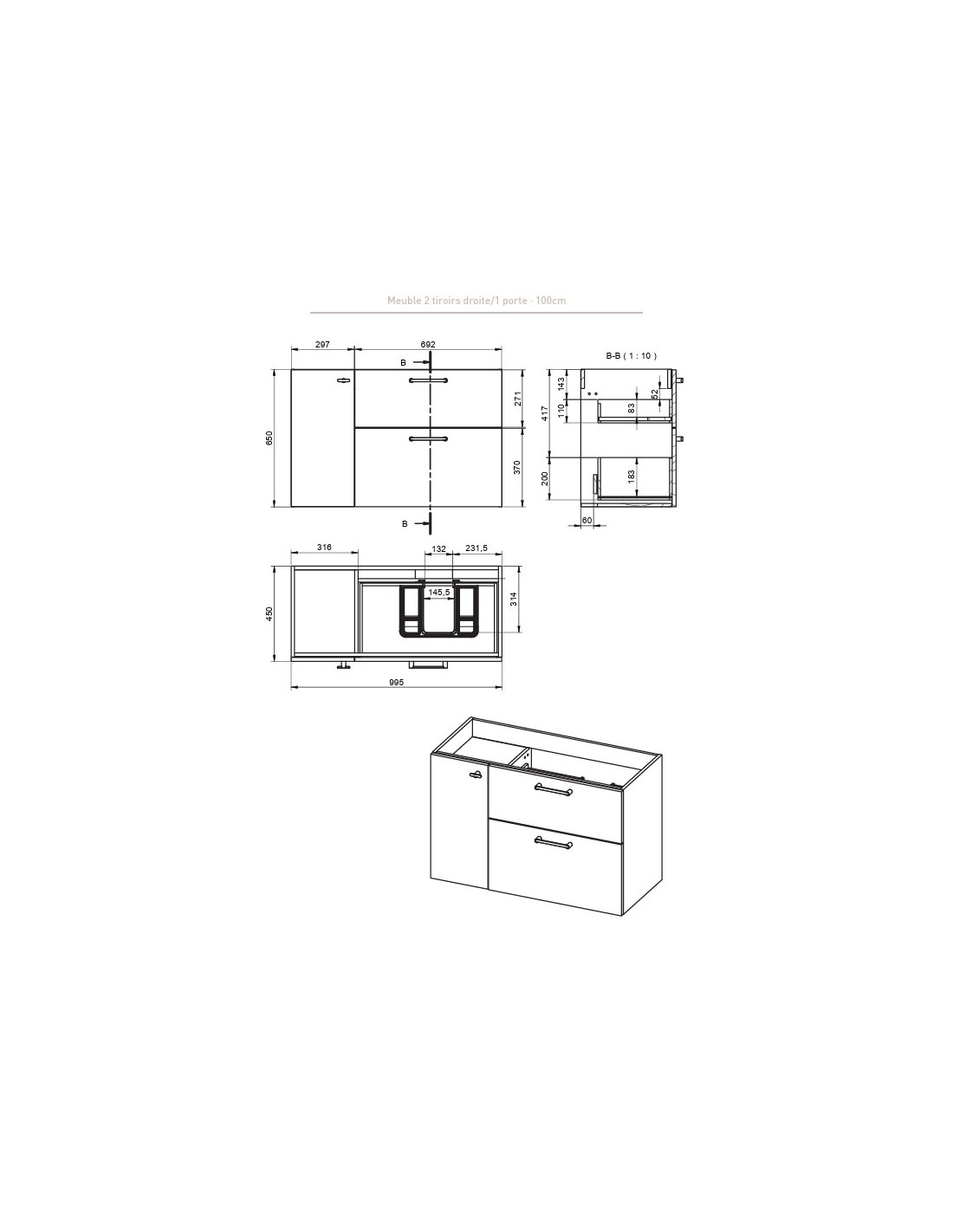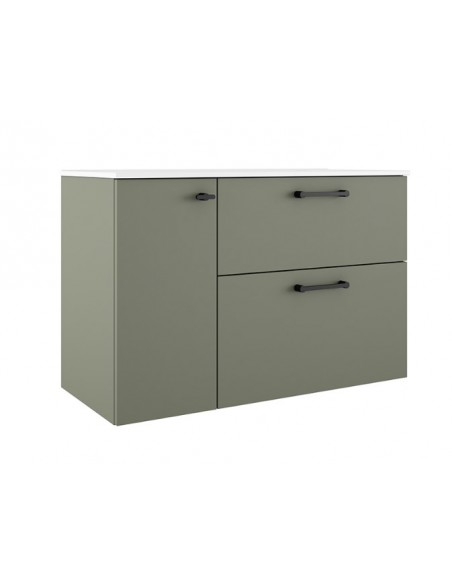 Ensemble meuble vasque 100 cm, avec 2 tiroirs à droite et 1 porte à gauche, poignées noires Visobath