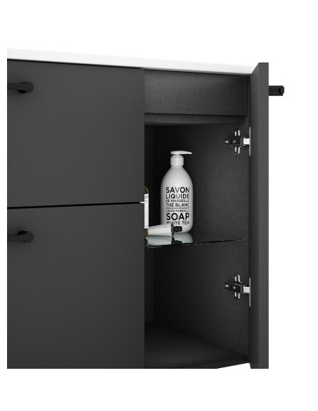 Ensemble meuble vasque 120 cm, avec 2 tiroirs et 2 portes, poignées noires Visobath