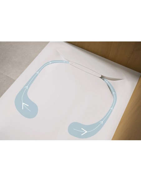 • Receveur avec écoulement d'eau latéral inédit, la zone centrale légèrement bombée permet d'éviter d'avoir les pieds dans de l'eau stagnante