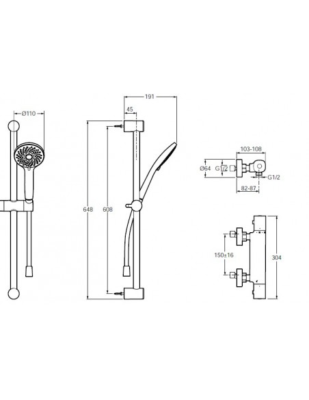 - un ensemble barre de douche et douchette Basic Ø110 mm (E31178-CP).