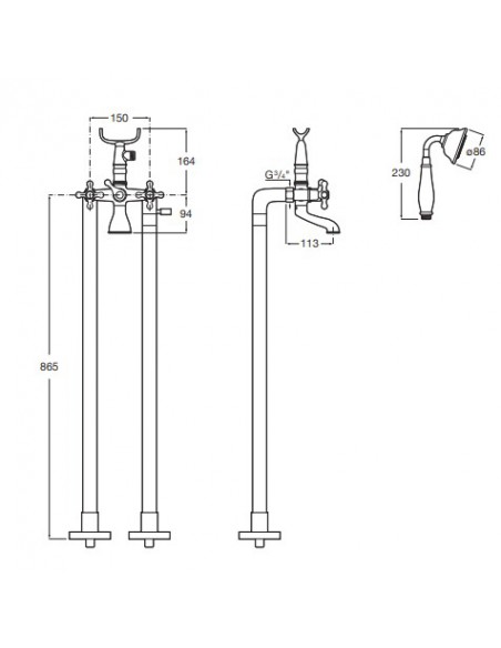 Sur colonnes d’alimentation verticale à installer au sol. Chromé.